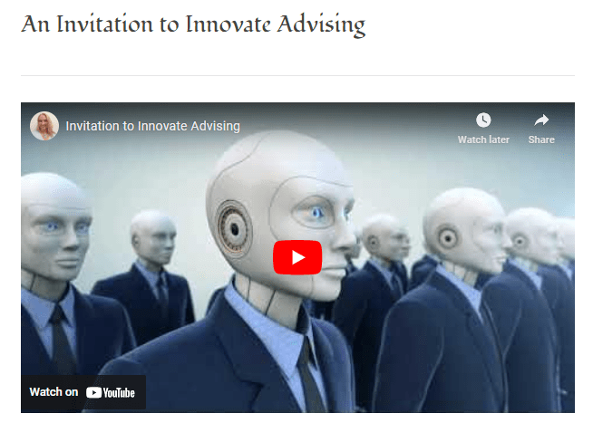 Advisors can transform most of the information we repeatedly provide daily into infographics, videos, and other digital media such as blogs, discussion boards, and live chats. An advising resource gives everyone more time to connect during advising appointments. Advisors can leverage the authentic learning opportunity to benefit learners beyond their time at our institutions.