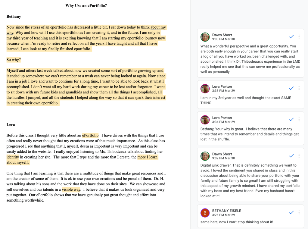 Using ePortfolios Discussion