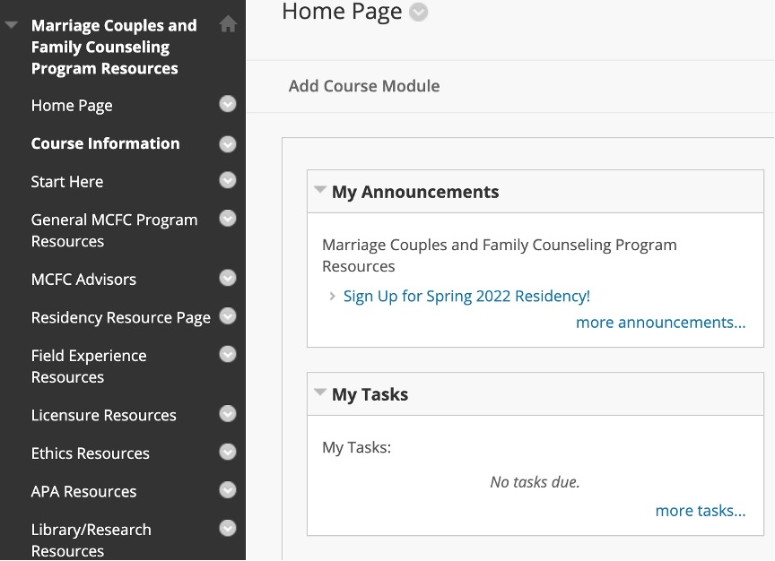 Along the left hand submenus you will find a variety of valuable Counseling Program resources and information.