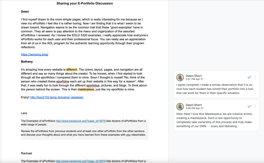 Personal reflection: I am hopeful that my classmates are all finishing their literature review and implementation outlines. Not to mention how overwhelming the final video requirement felt to me as my first attempt at anything like digital storytelling. I look forward to further discussions as we move towards our final post for the ePortfolio course.